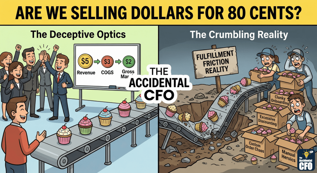 In my “Cupcake Shop” post last year, we established a weak gross margin is like frosting air. If every sale makes you hungrier instead of richer, it’s not growth—it’s a sugar high.