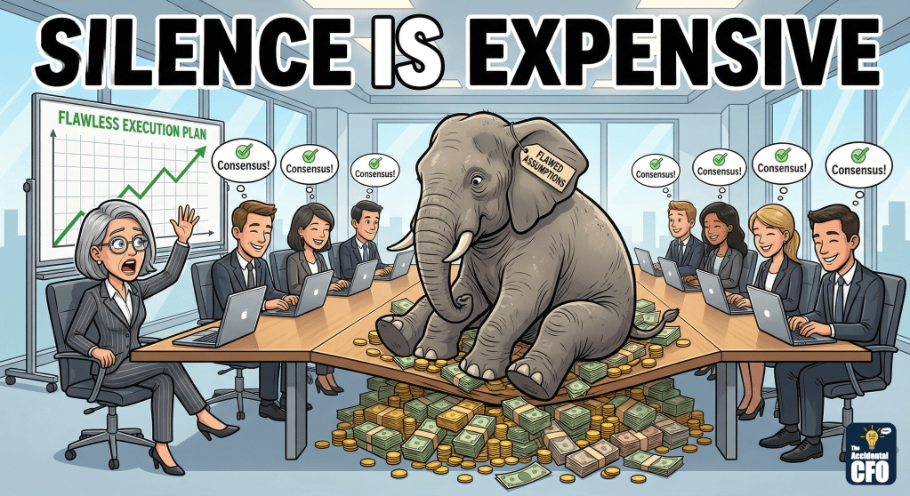 The next time you are in a meeting and feel that knot in your stomach telling you the plan is flawed, clear your throat. The only thing more uncomfortable than interrupting a confident room is explaining to the board next quarter why you let a bad plan happen.